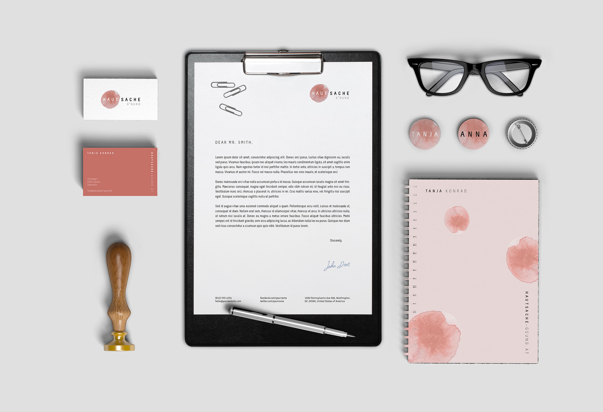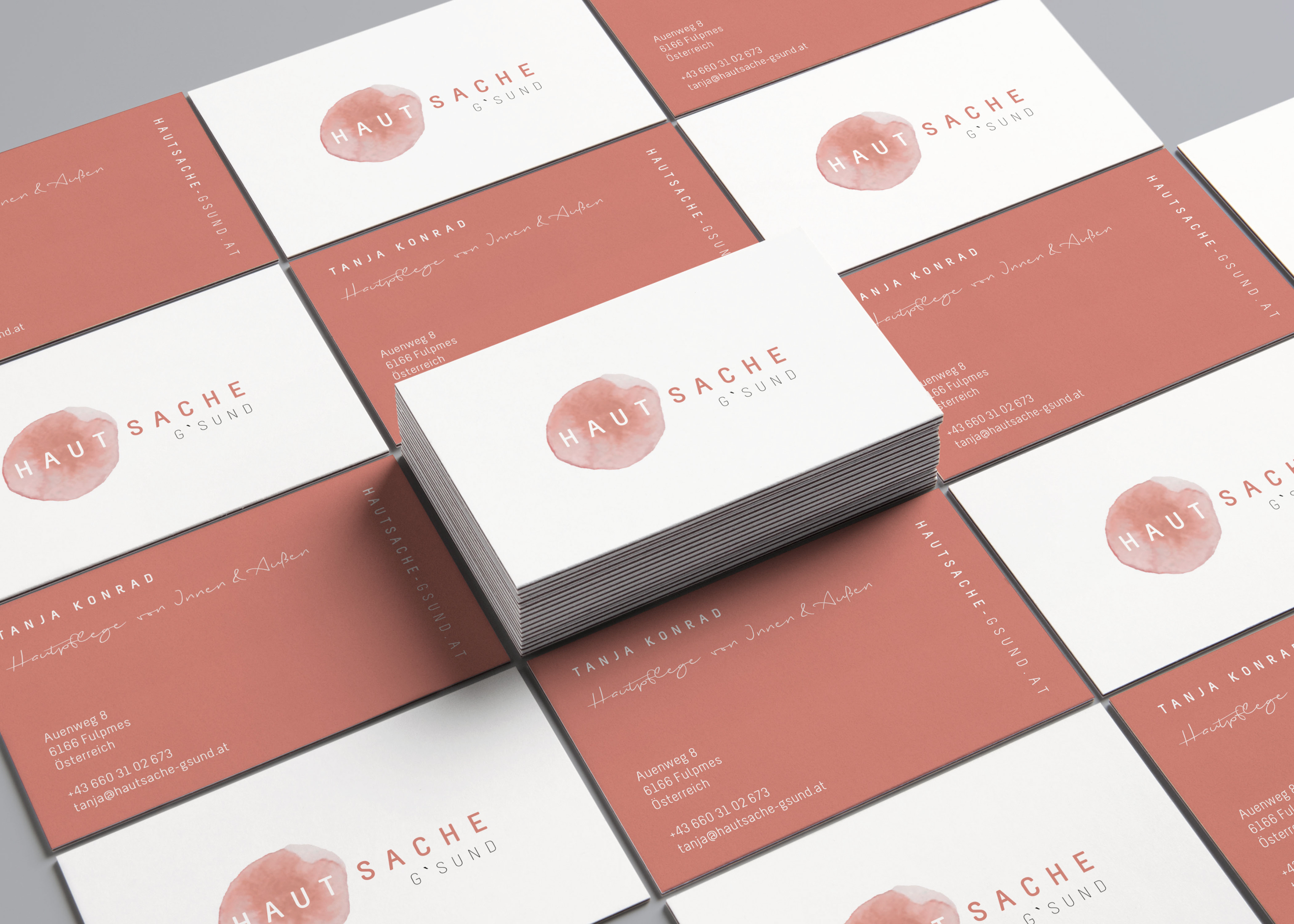 The goal of the logo and corporate design was to be clearly recognizable as a cosmetician, but at the same time to convey the working method based on naturalness. As a result skin tones dominate the design and layout. A skin patch serves as a logo and reflects the naturalness of the healthy skin.